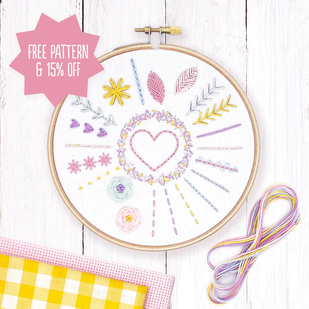 Get a free 13-stitch sampler + 15% off your first order