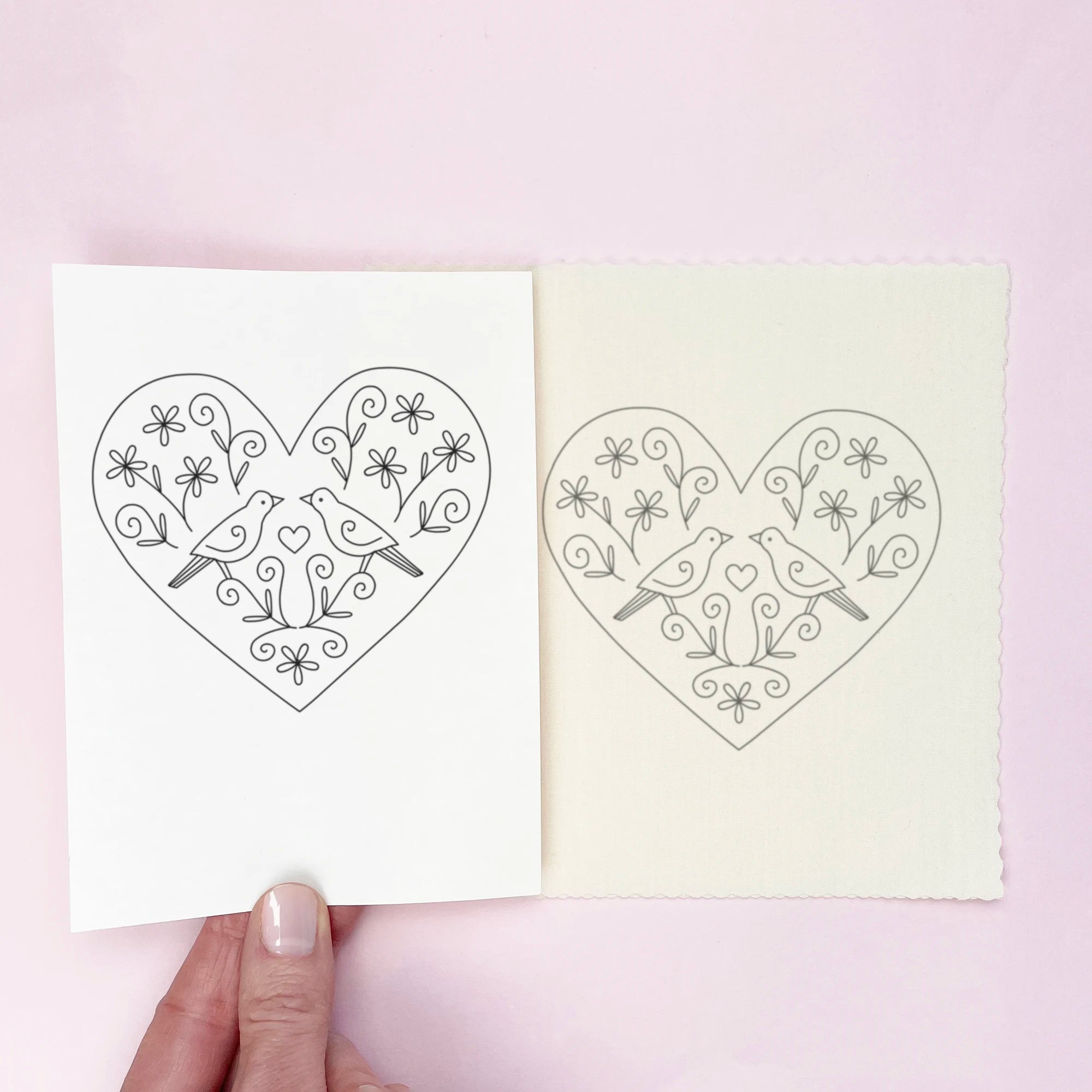 Choose your favourite heart, cut it out, and transfer it onto your fabric with a hot iron. Once pressed, it’s ready to stitch straight away. The designs can be reused, making them ideal for creating coordinated pieces or repeating motifs across different projects.