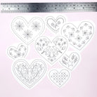 Add a touch of folk-inspired charm to your stitching with this set of eight heart shaped iron-on embroidery patterns. Each heart features a different decorative design, from floral details and leafy borders to stars, birds and simple stitched textures. They’re a lovely choice for adding handmade detail to clothing, cushions, bags and gifts, especially for thoughtful, personal projects.