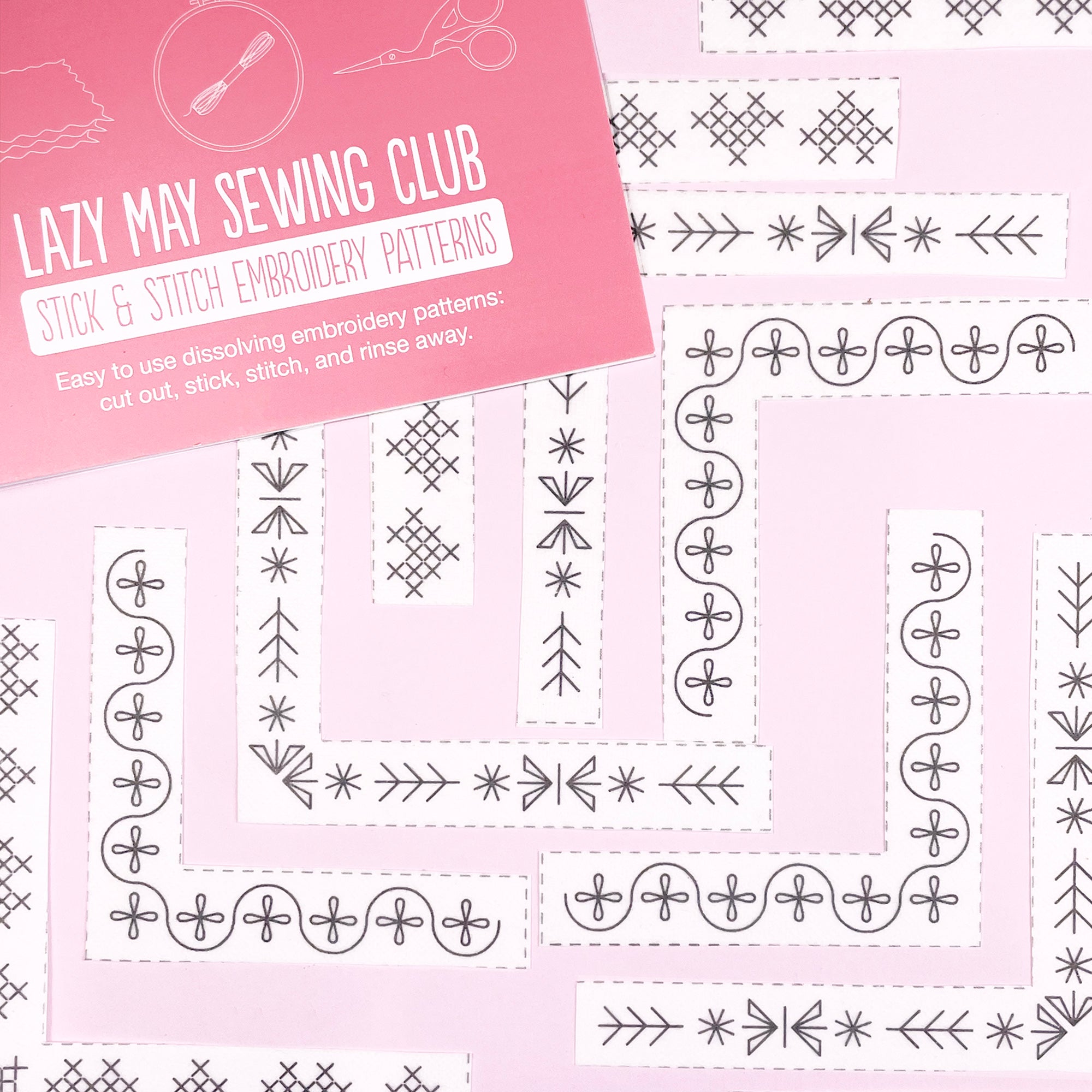 They’re really easy to use—just peel off the backing, stick the design in place, stitch over the top, then rinse it away!
