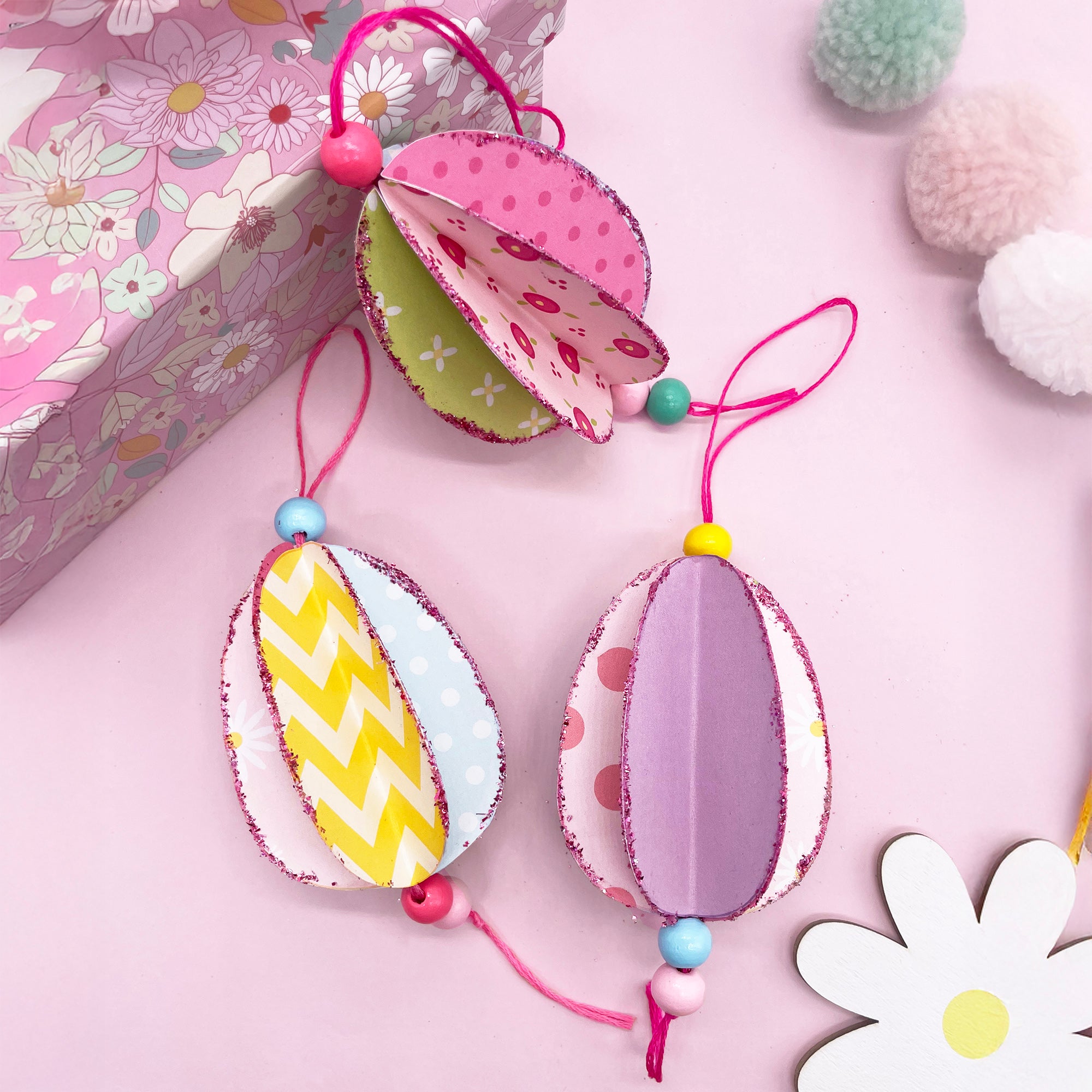 Each kit includes full, easy-to-follow instructions, a selection of colourful patterned papers, glue, glitter, thread, and wooden beads, so you can add a touch of sparkle and texture to your creations. With high-quality materials and a thoughtful design, this kit makes crafting simple and enjoyable—perfect for creating handmade Easter decorations that will brighten your home year after year.