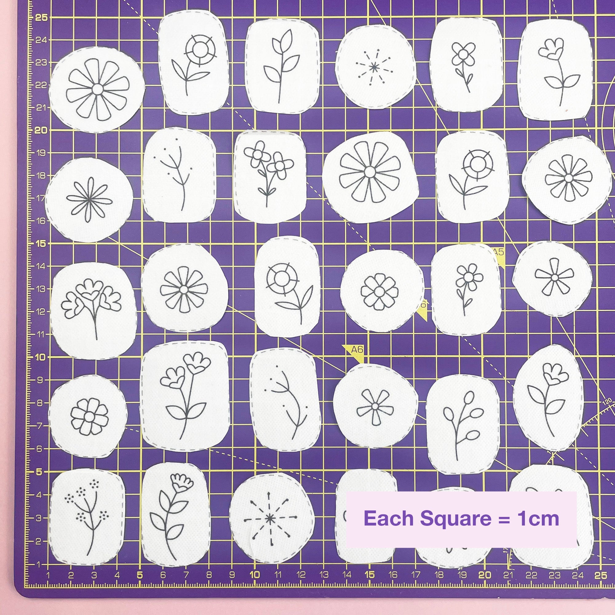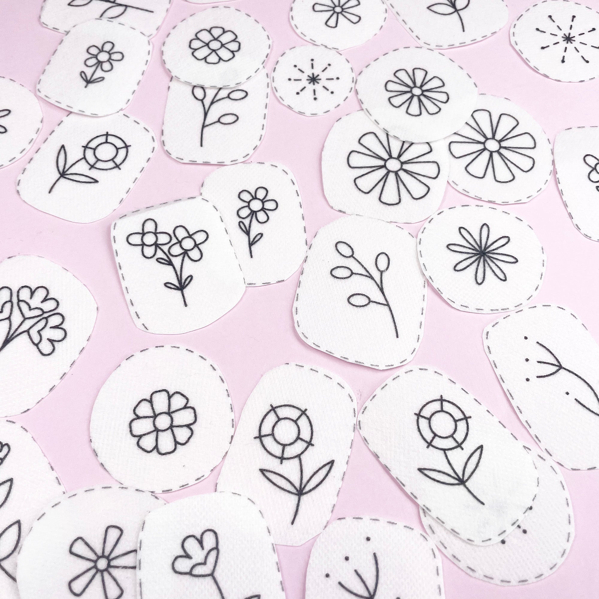 More than 30 mini flower embroidery patterns to stitch your way! This stick and stitch pack is full of sweet floral designs, each one between 2–4cm tall—perfect for adding embroidery to clothes, personalising gifts or creating your own floral hoop art. Just stick, stitch and rinse away.