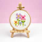 Small wooden easel that’s just the right size for showing off your finished embroidery hoops. Ideal for adding a handmade touch to your shelves or for displaying pieces at markets or craft fairs. It folds flat when not in use, so it’s easy to store or pack with your supplies.
