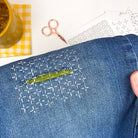 Give your clothes a new lease of life with this beginner-friendly Visible Mending Kit, inspired by traditional Sashiko techniques. It’s a simple and stylish way to upcycle your wardrobe using stick and stitch embroidery patterns that are easy to apply, sew then wash away.
