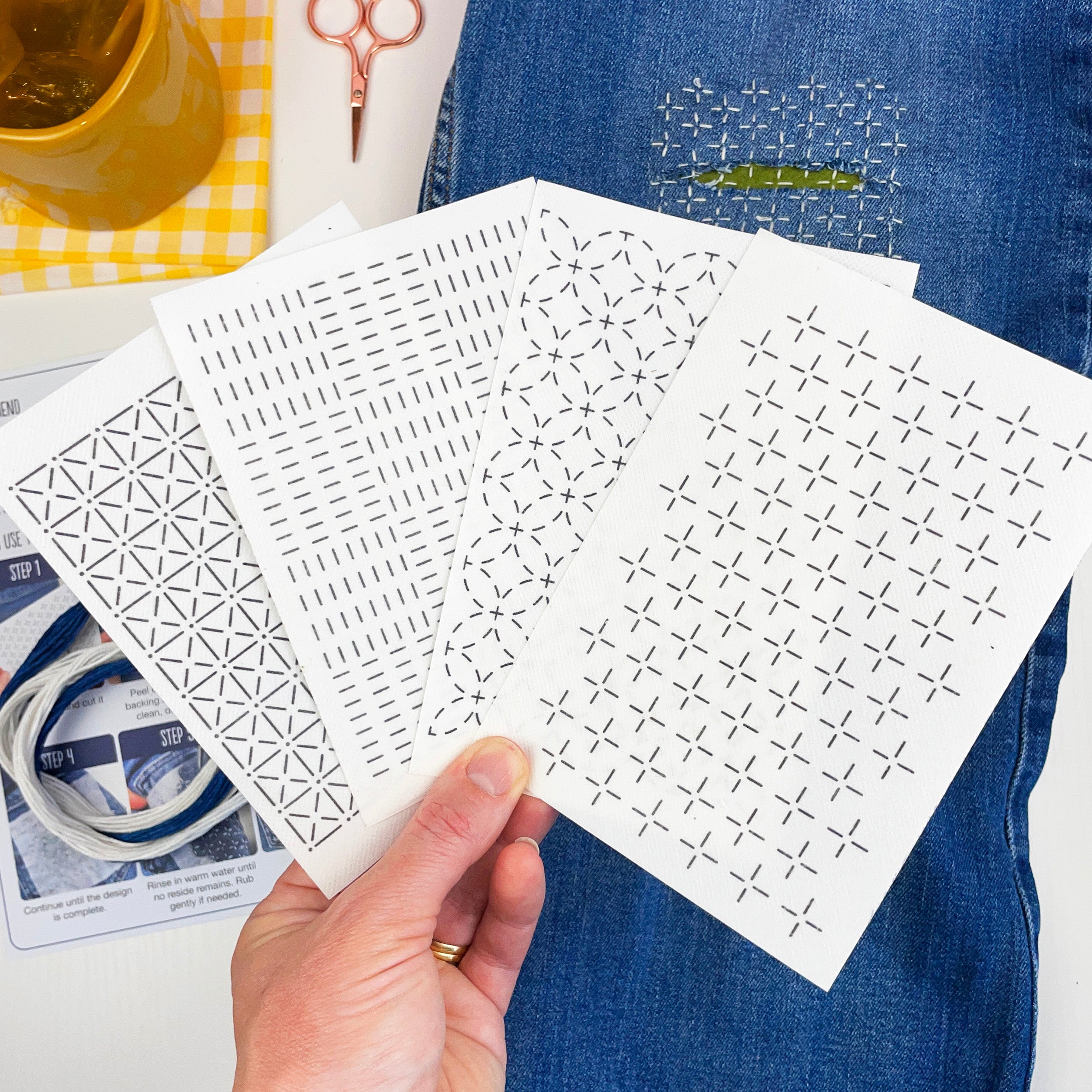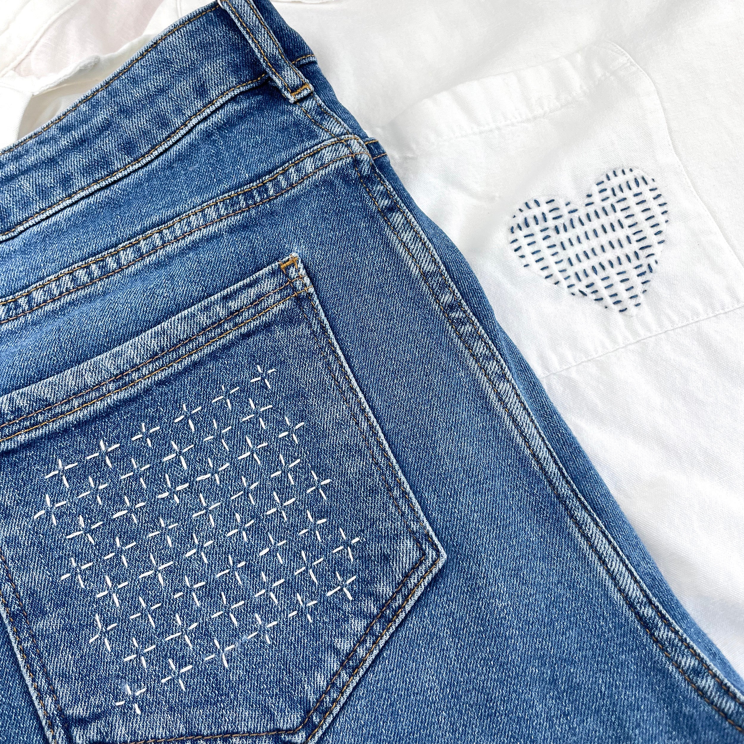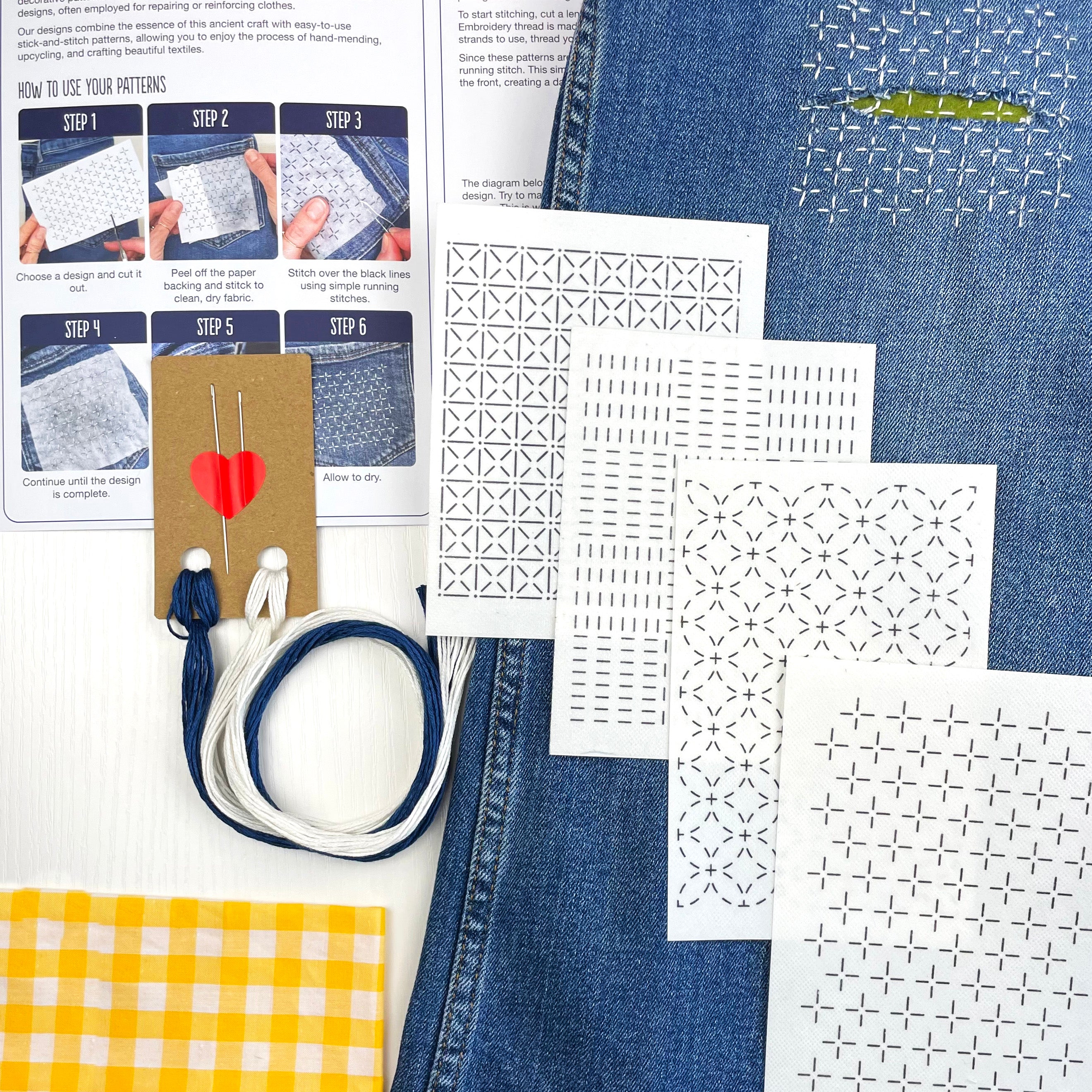 Visible Mending Kit (Set 2): Sashiko Inspired Stick & Stitch Patterns