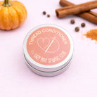 A warm pumpkin spice embroidery thread conditioner, made with natural beeswax for smooth, cosy stitching.