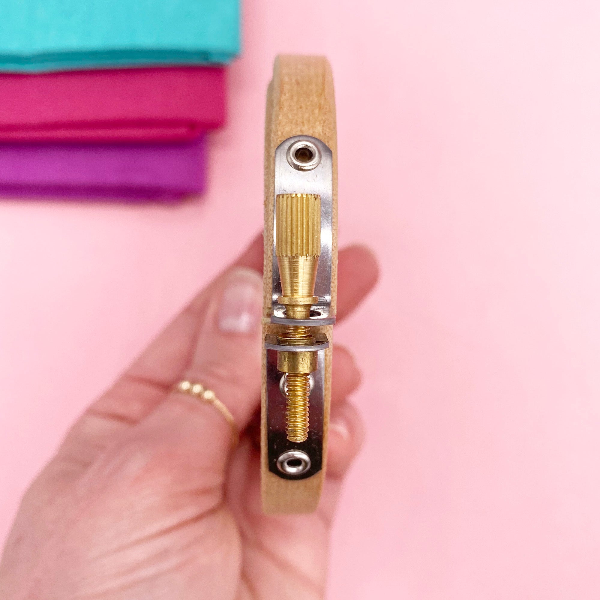 3 inch / 7.6cm diameter wooden embroidery hoop with brass screw fixing