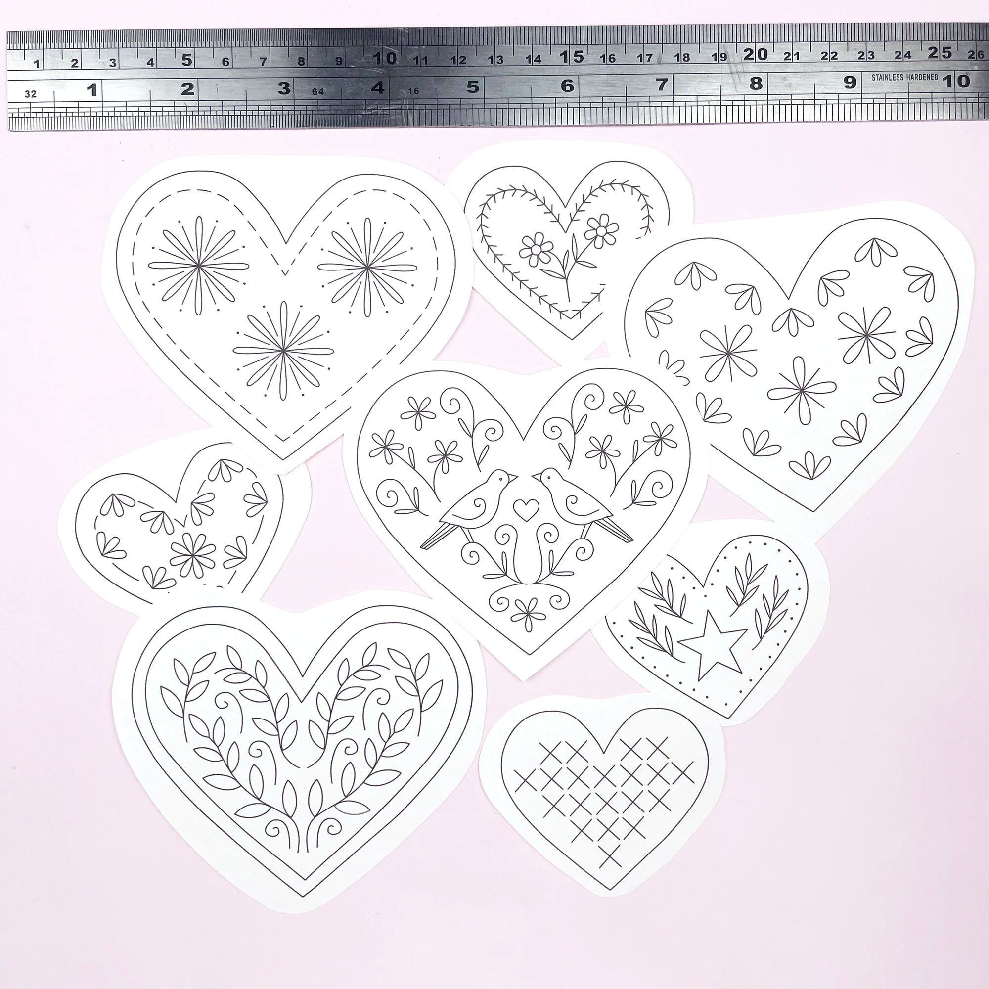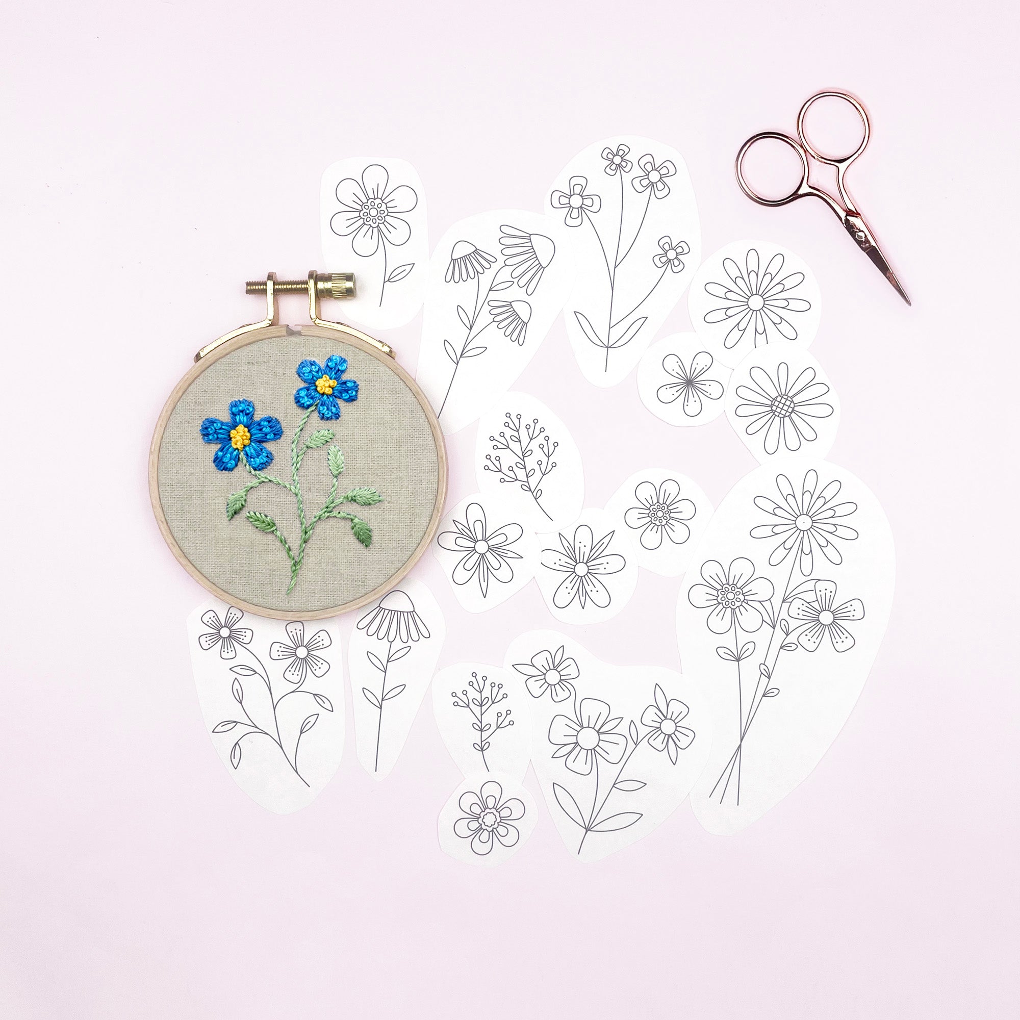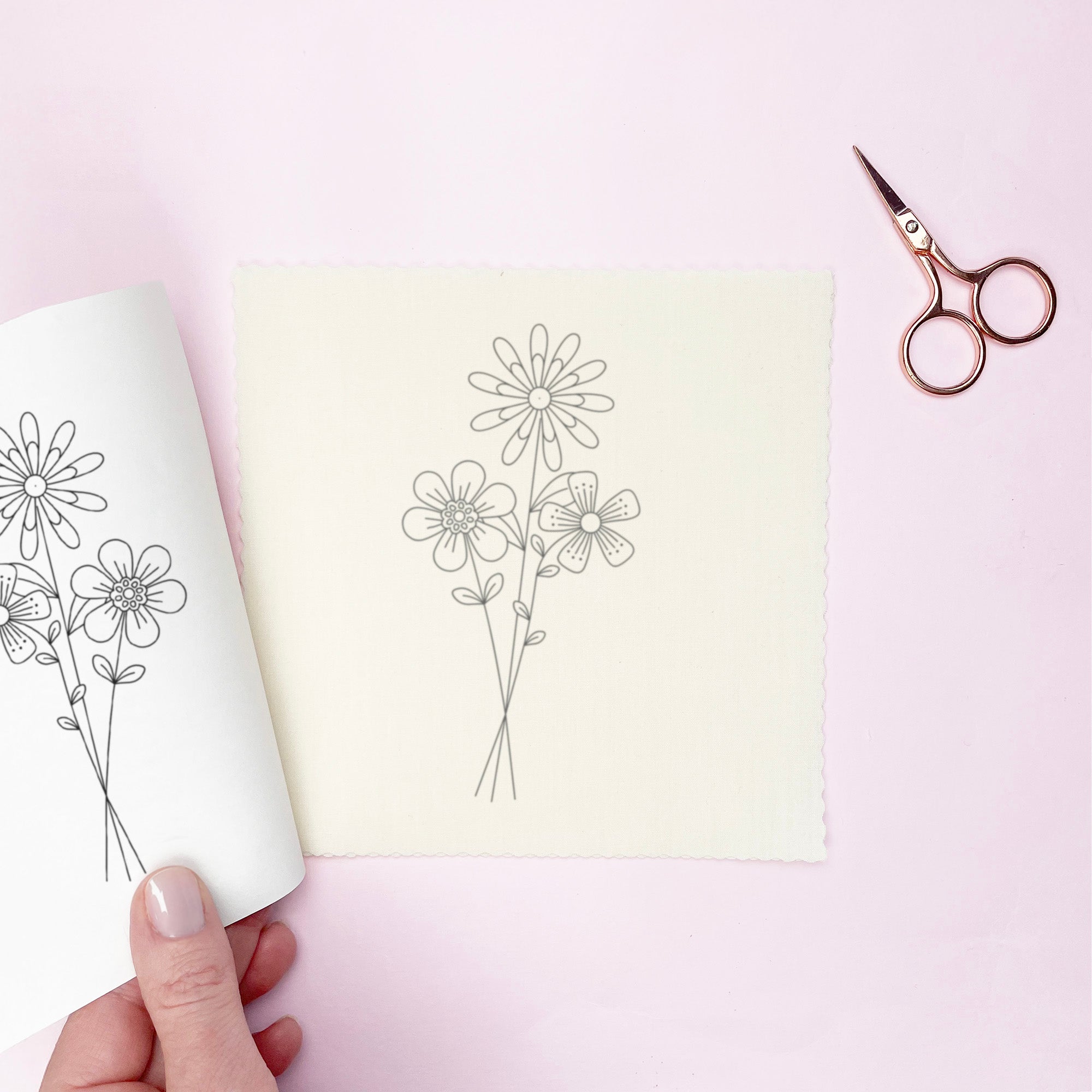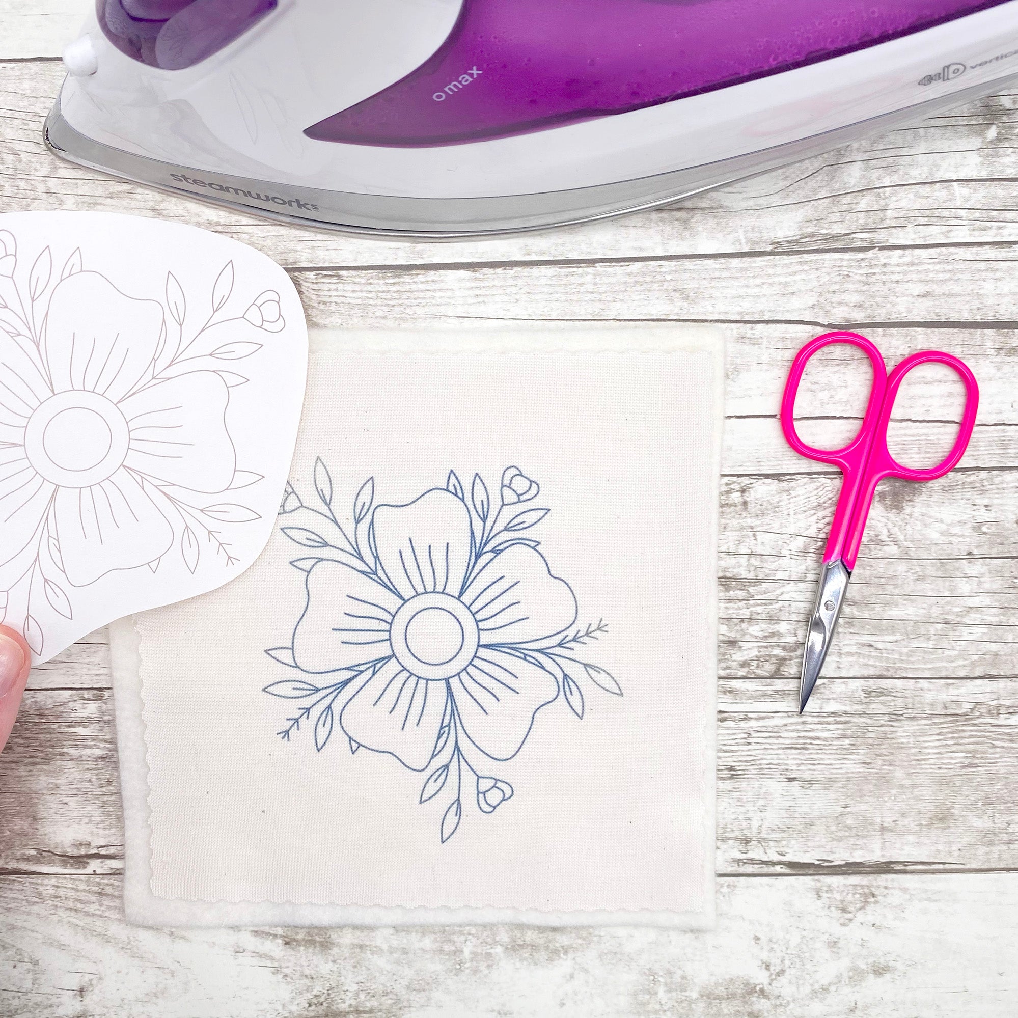 Iron-on embroidery patterns designed to transfer straight onto fabric with clear lines to stitch over, making it easy to get started. Best suited to light to medium coloured fabrics, each design can be reused 2–5 times.