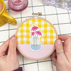 Select and stitch from this set of eight modern flower-in-a-vase iron-on embroidery designs. Each small motif is quick and easy to stitch, making them ideal when you want to add a simple decorative detail to a project. Inspired by spring blooms, the designs are uplifting, relaxed and well suited to multi-use, mix-and-match stitching.