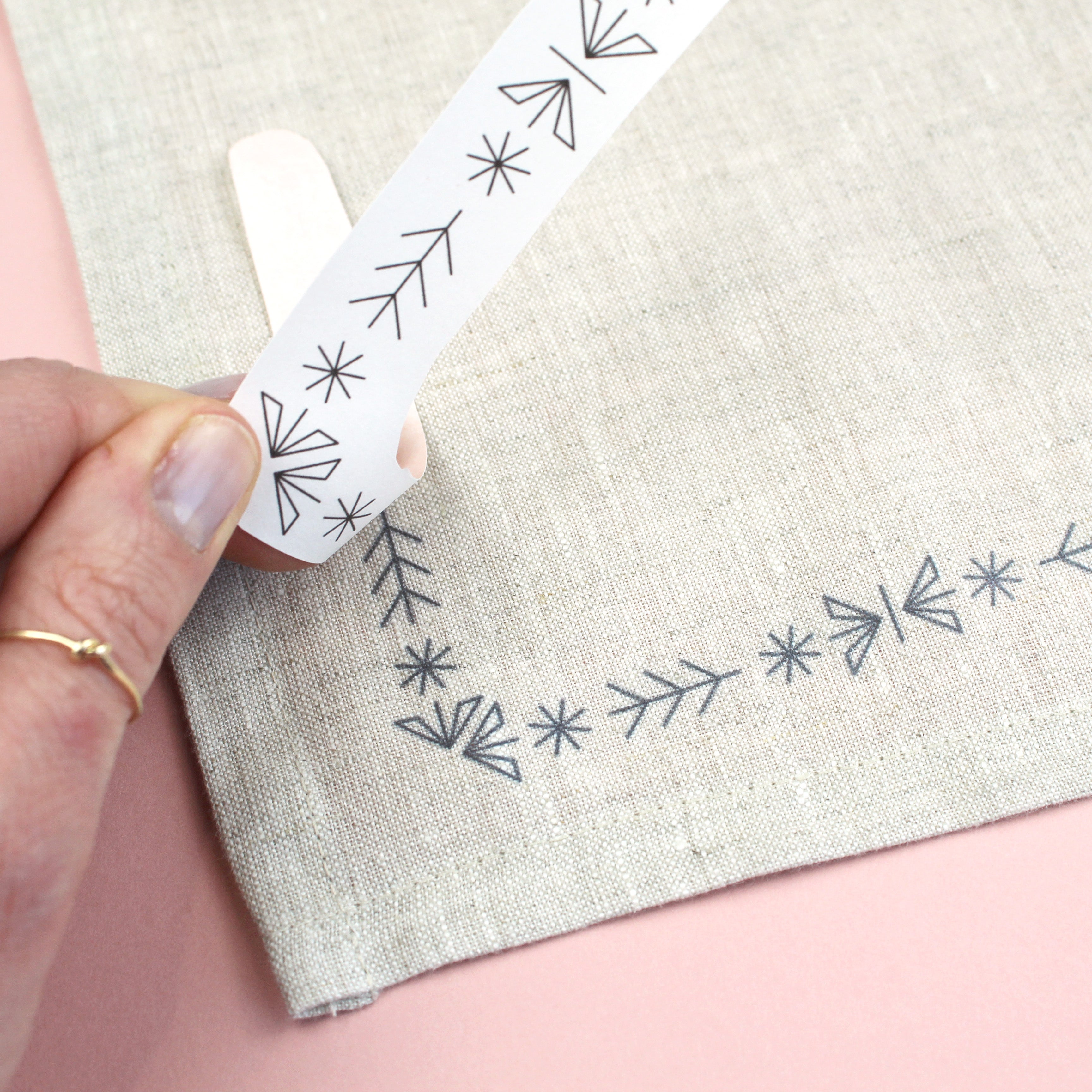 Iron-On Embroidery Designs that are Perfect for Adding a Handmade Touch to Napkins, Pillows, Runners and More.