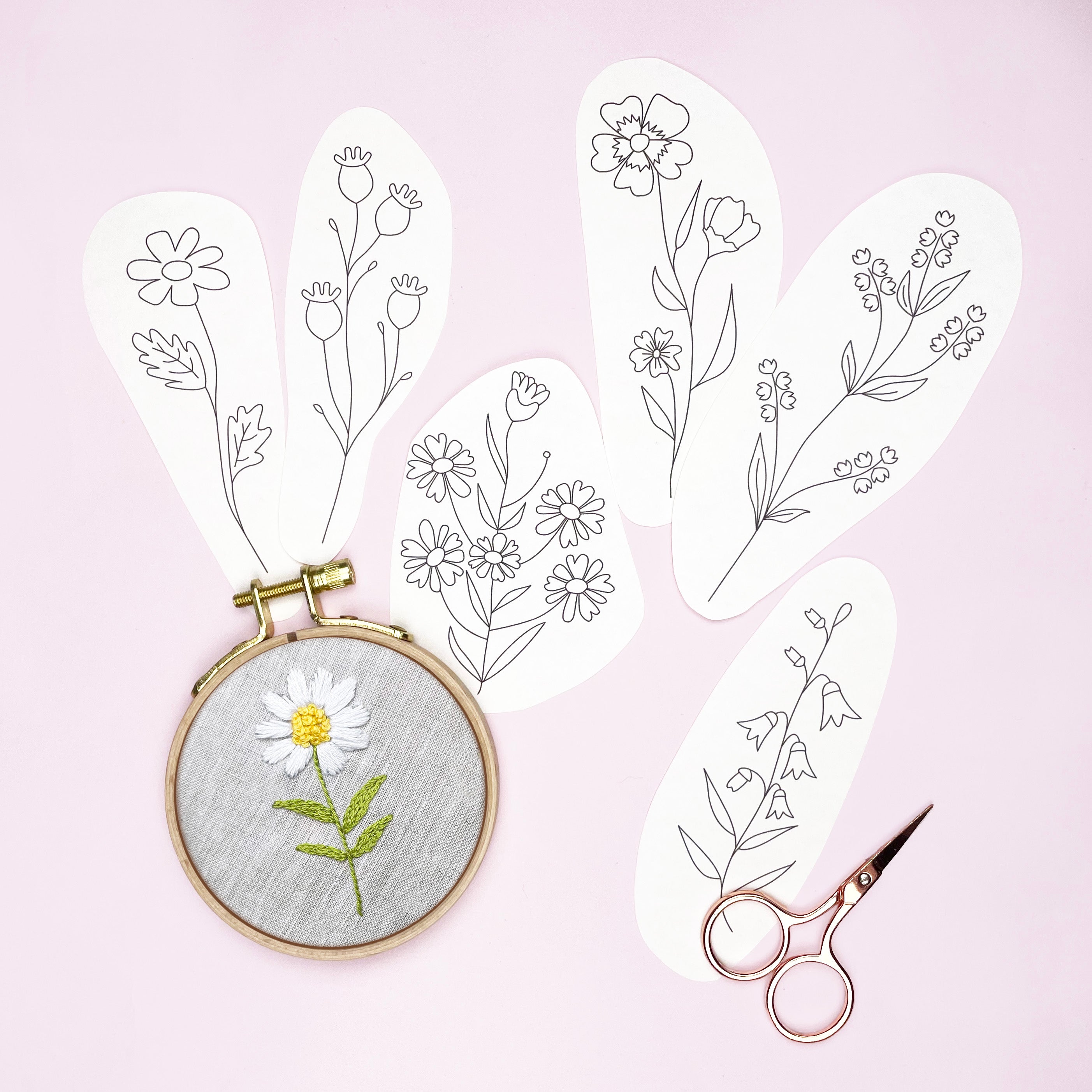 Add flowers to your favourite t-shirt, stitch a floral cushion cover or create wild flower hoop art, there are so many possibilities for our floral embroidery transfers.