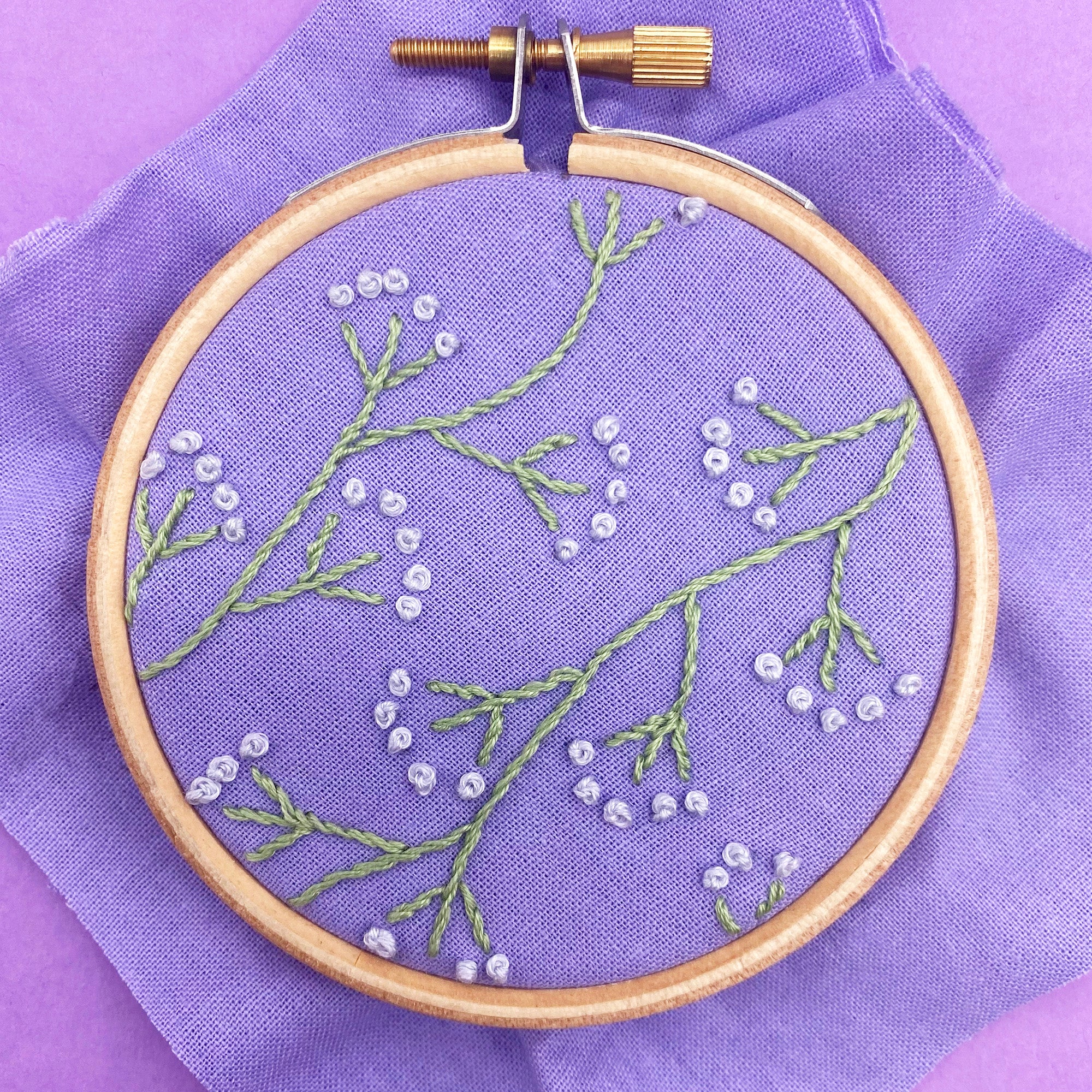 You will need some fabric to stitch on, (cotton and natural fabrics are great for beginners), some embroidery thread, scissors and a needle. You can find a great range of supplies in our shop if you are short of anything.