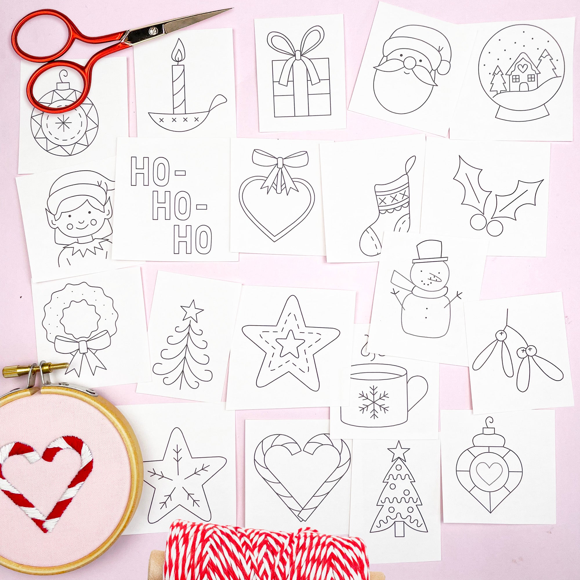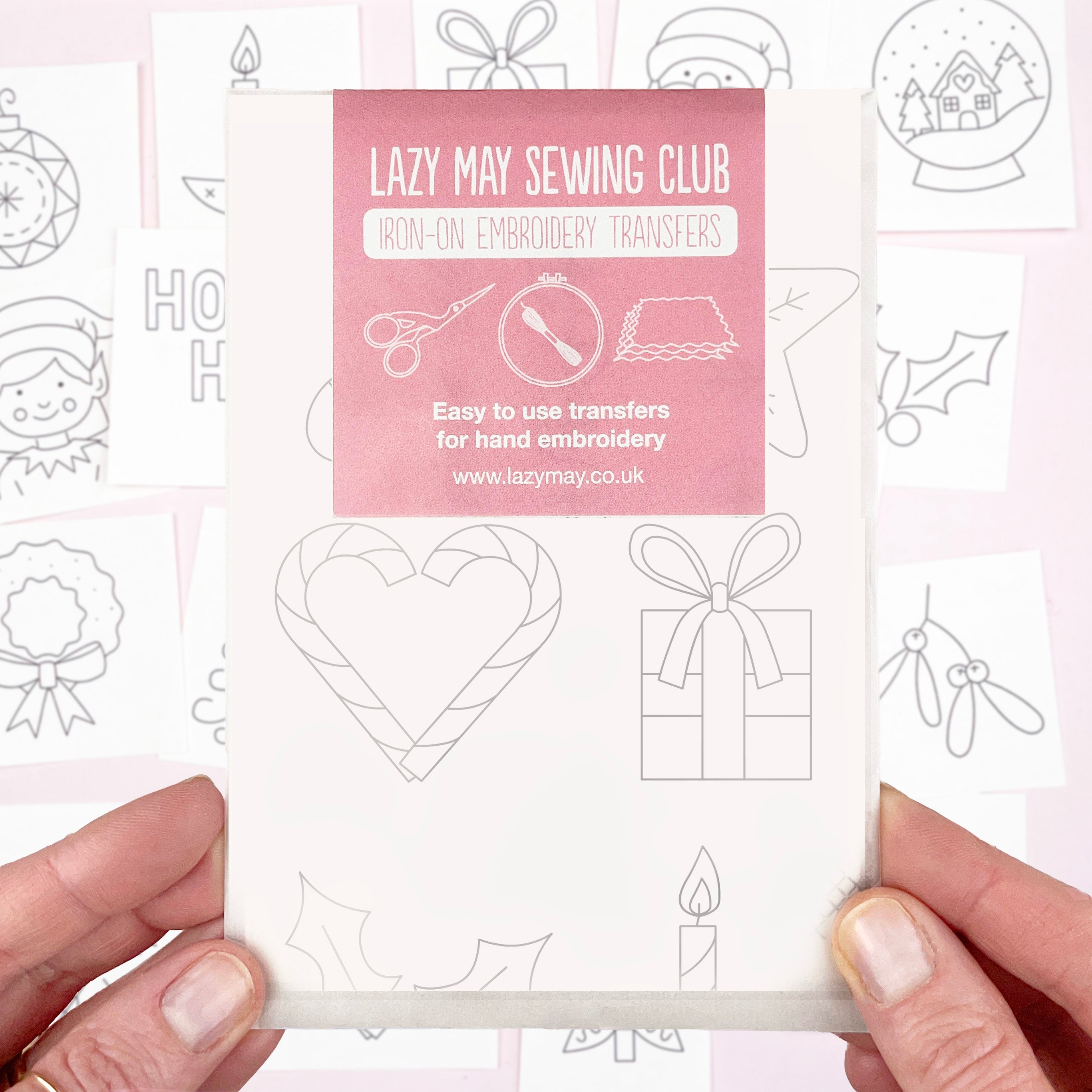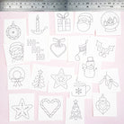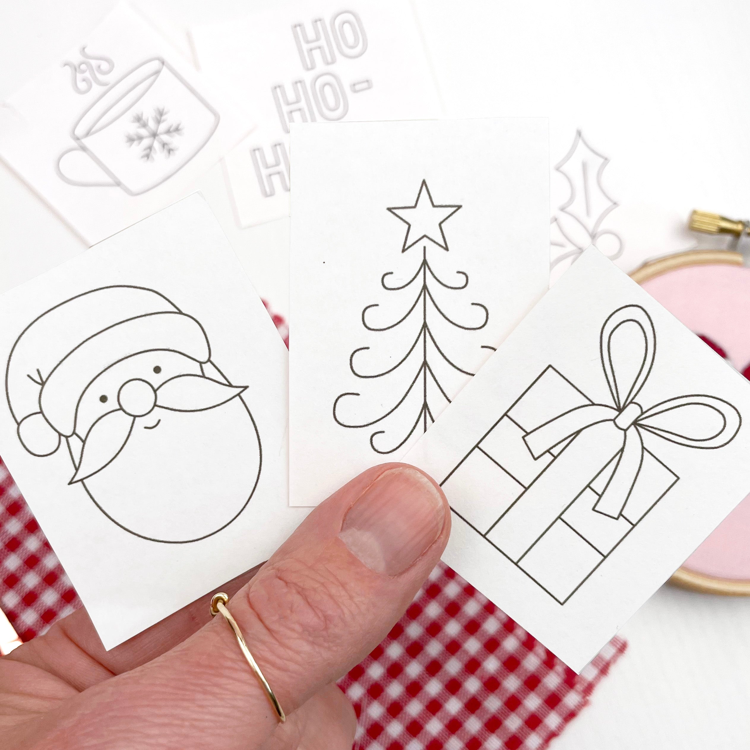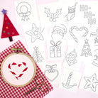 Easy to use iron on embroidery patterns with 16 Christmas themed designs, simple cut out, iron on and sew!