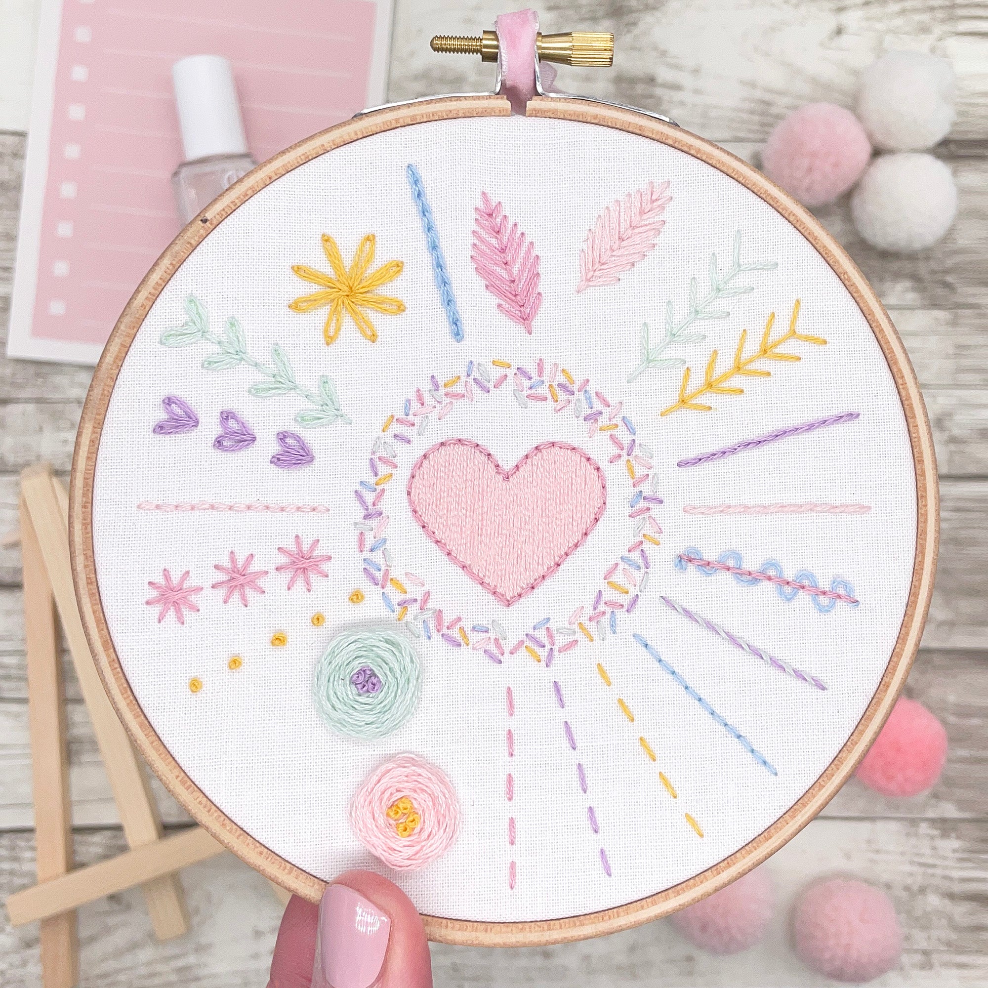 Start your embroidery journey with this beginner-friendly kit, perfect for learning 13 essential stitches.